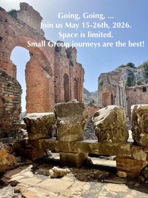 Joe is currently promoting a spring 2026 trip to Sicily! Still a few spaces left for this adventure! check it out...It’s just about filled…